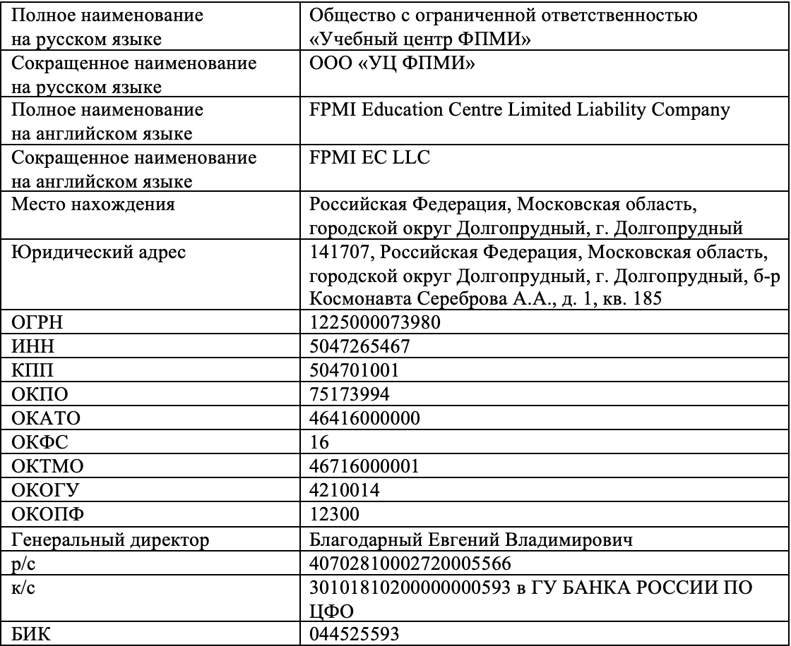 Реквизиты компании